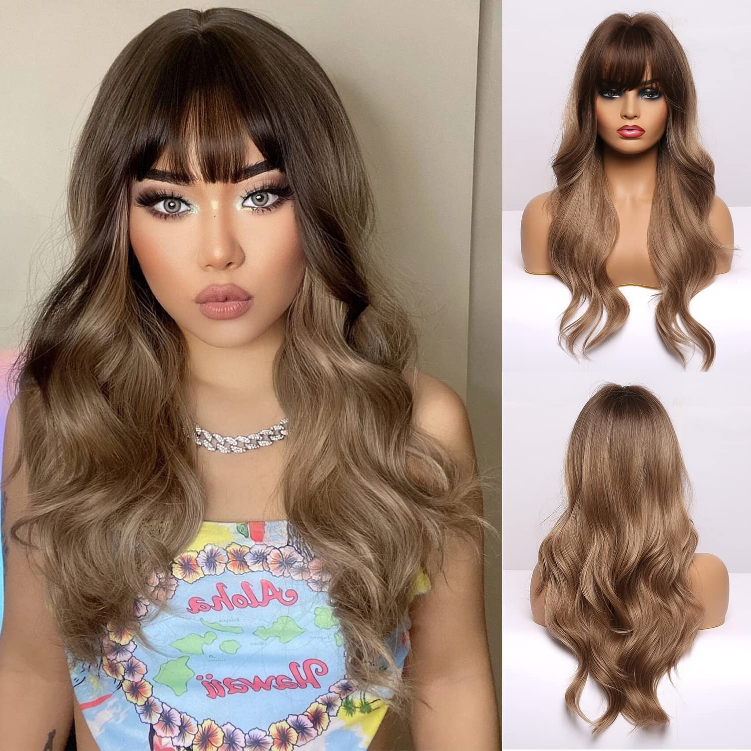 Brown Wig With Bangs Long Big Wavy Brown Wigs For Women Natural Layered Realistic Synthetic Heat Resistant Hair Best Wigs For Daily Halloween Party Cosplay Walmart Com